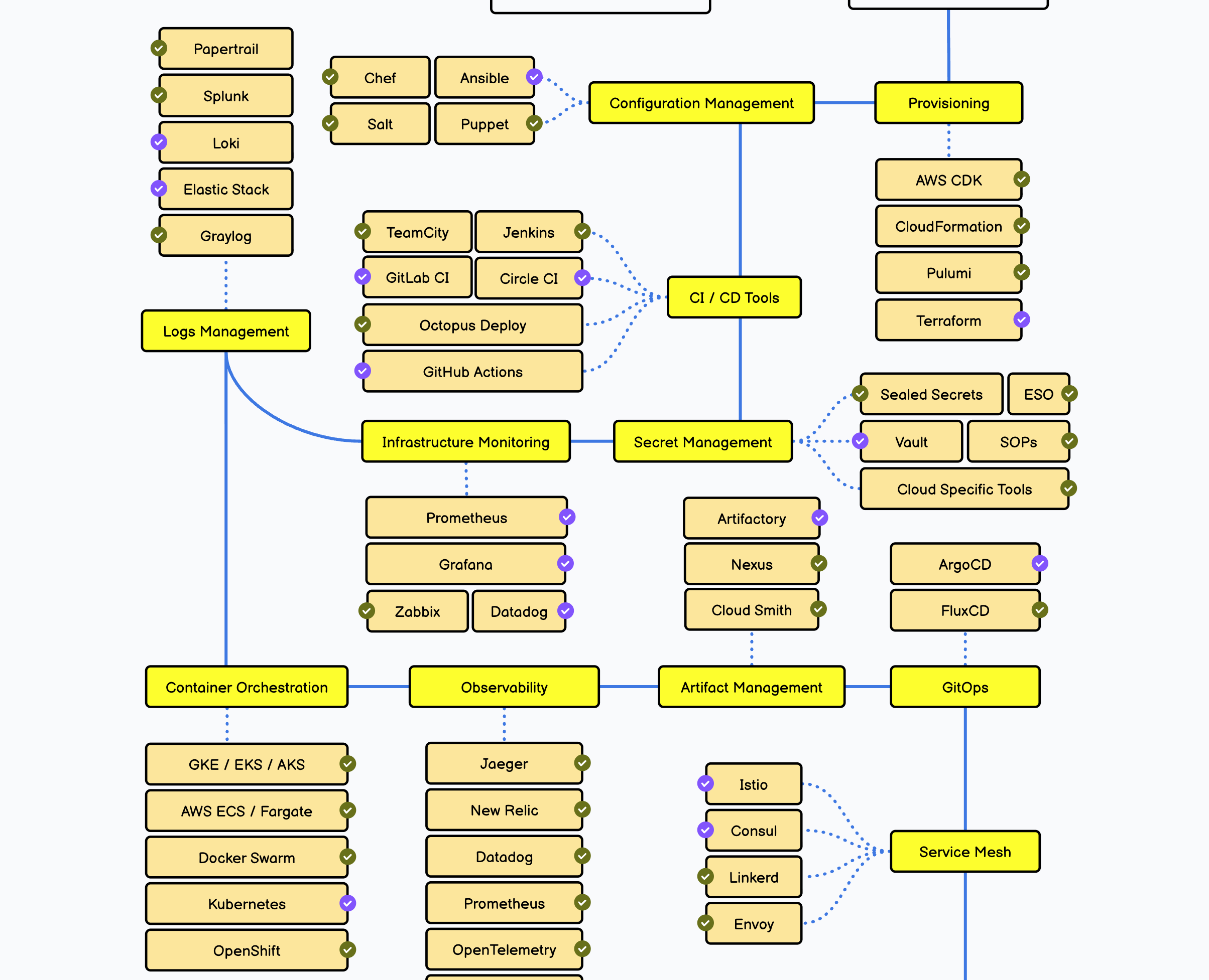 I am not dissing on roadmap.sh, I actually like it for what it is. But lets take a look at the DevOps roadmap from the perspective of a junior engineer – it is essentially a giant web of alien words.