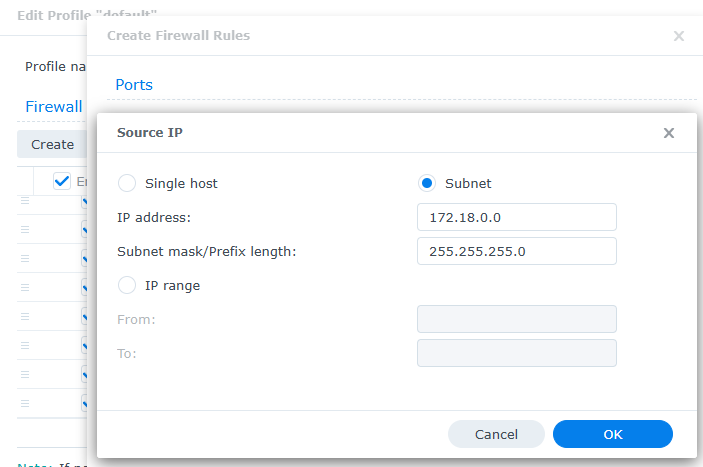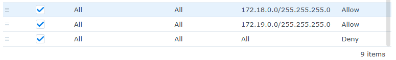 Fortunately, it is very easy to fix. It is most probably due to your Synology's firewall rules. So, all we have to do is add the docker container's IP ranges to the firewall